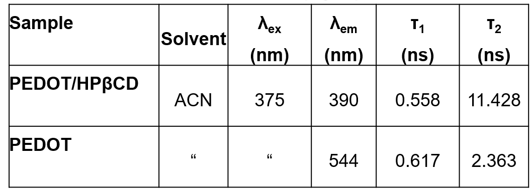 Table. 2. Emission lifetimes (τ) of PEDOT/HPβCD polyrotaxane and PEDOT.